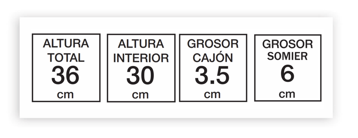 ✅ Altura interior de 30 cm: Por otro lado, esta medida ofrece un amplio espacio de almacenaje, ideal para aprovechar cada rincón del dormitorio.