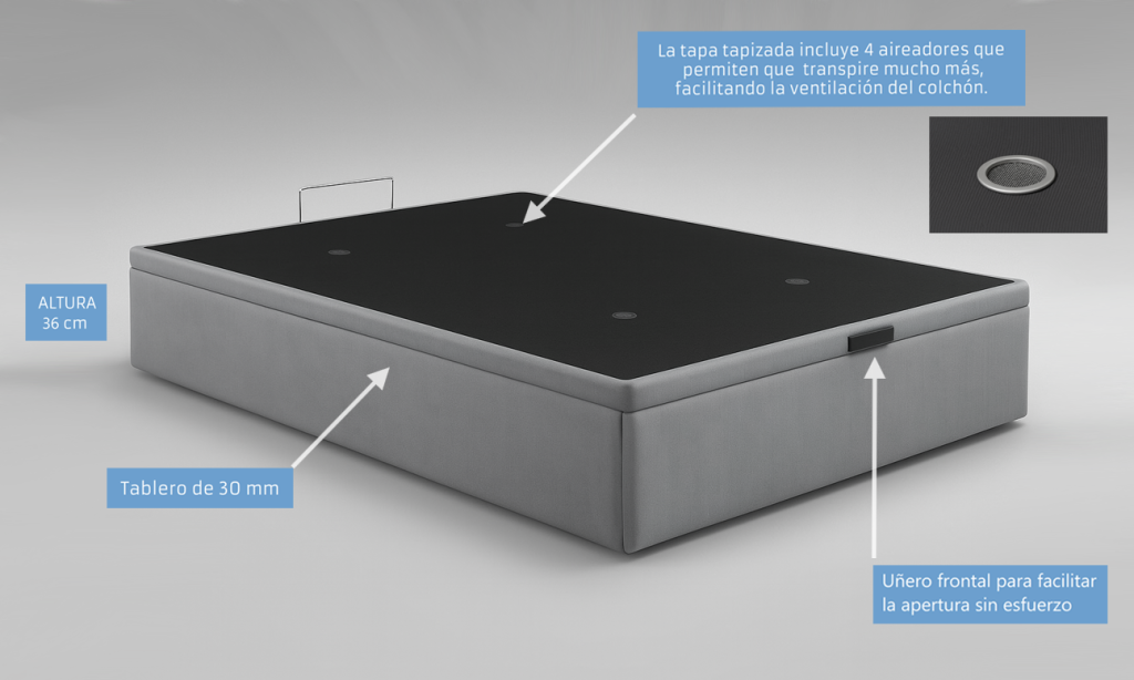✅ Tapa de 6 cm extra transpirable: Finalmente, la tapa reforzada y transpirable favorece la ventilación del colchón, asegurando mayor confort y cuidado del descanso.