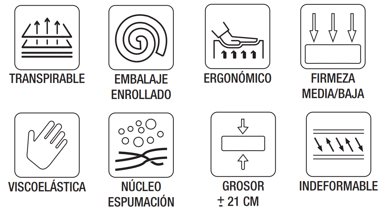 • Núcleo HR D/20 kg/m3: firme y duradero, mantiene el soporte adecuado cada noche.
