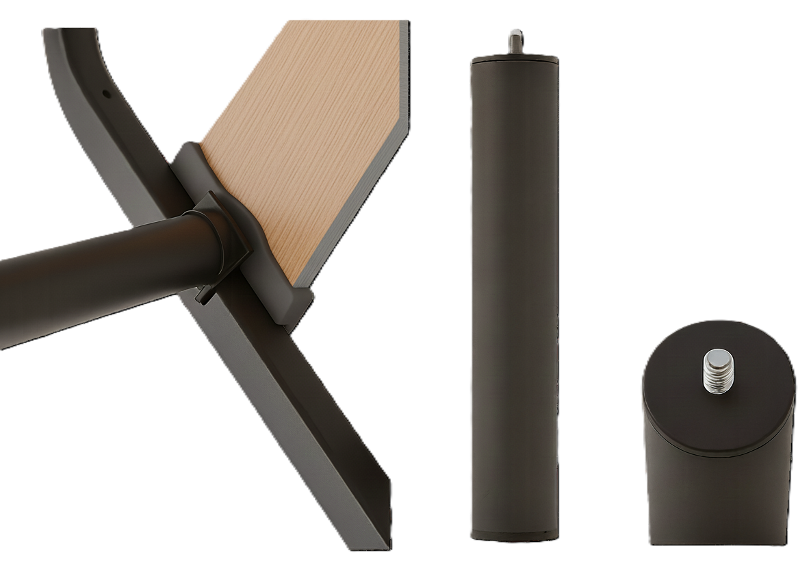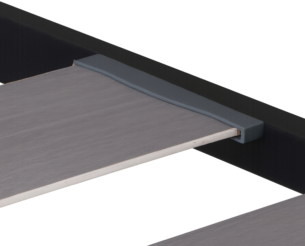 Cada lámina se fija mediante tacos de ABS embutidos directamente en el bastidor. Este sistema reduce el ruido, mejora la flexibilidad y asegura una sujeción firme sin movimientos indeseados.